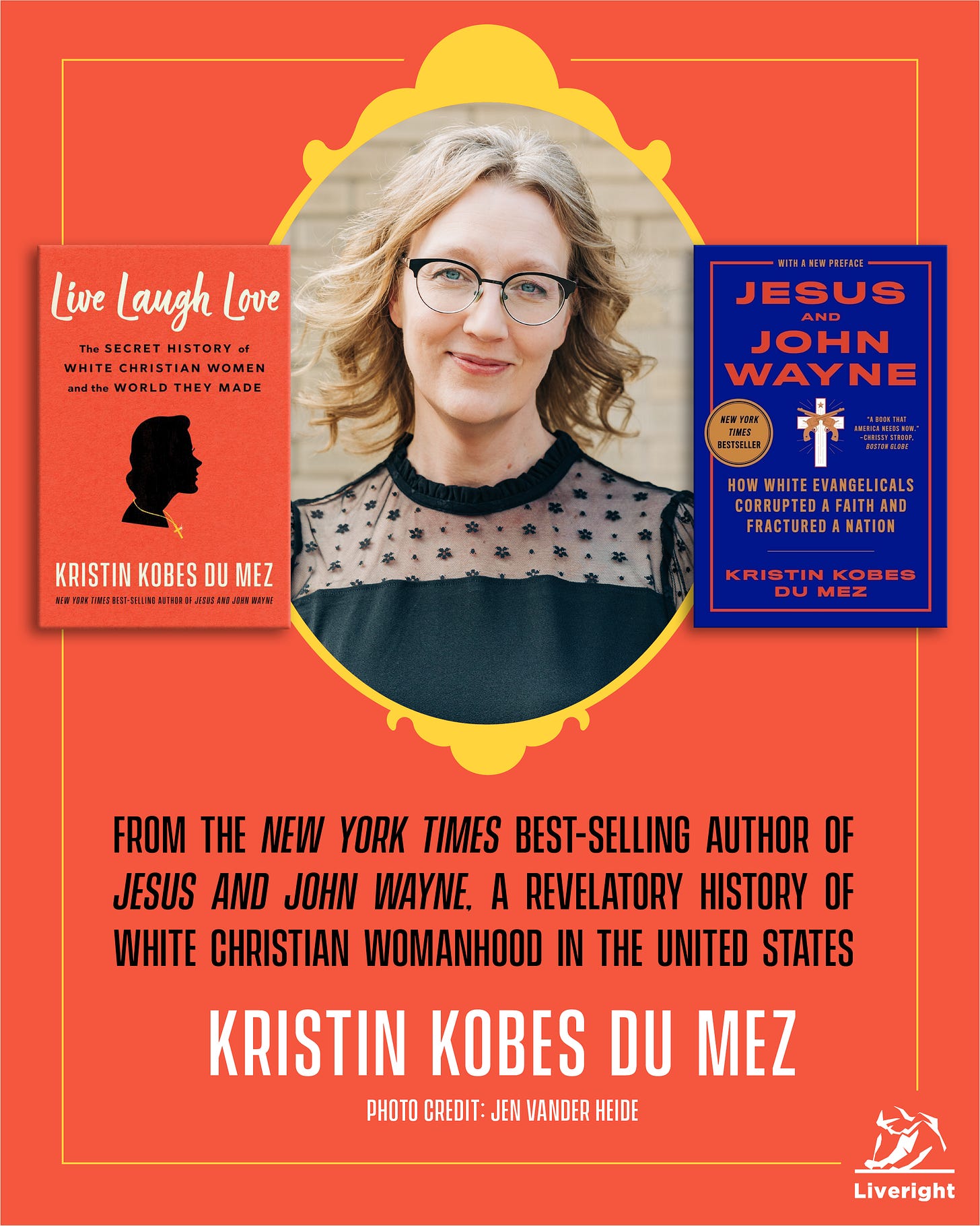 For those like me who have been mesmerized by Kristin’s ability to distill the complexity of cultural history into a compelling narrative, you won’t be disappointed. LIVE LAUGH LOVE is a rigorous piece of historical scholarship—one destined to be an instant classic in the field—that reads like a political thriller. And it’s arriving right on time to help us find our way forward during these dark days in American history.